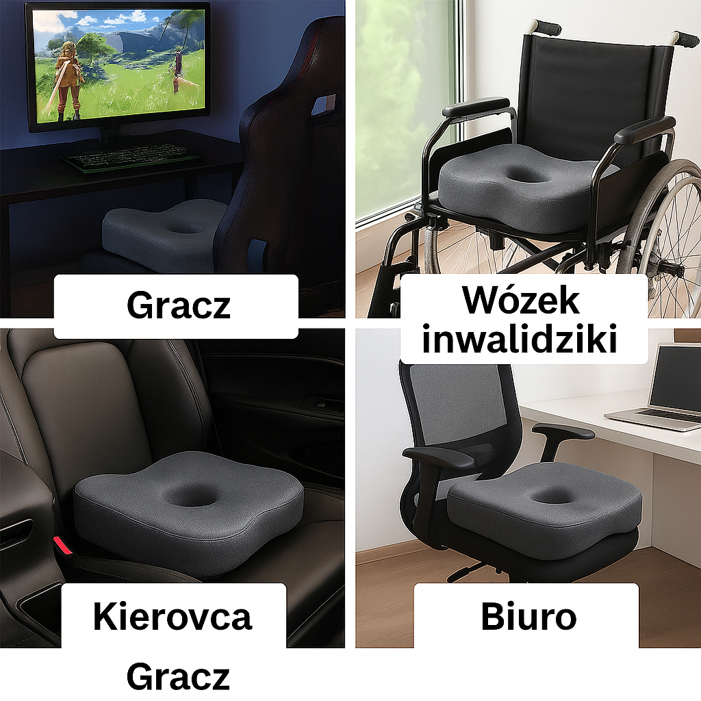 Ortopedyczna poduszka do siedzenia, która natychmiast zmniejsza nacisk i ból kości ogonowej.